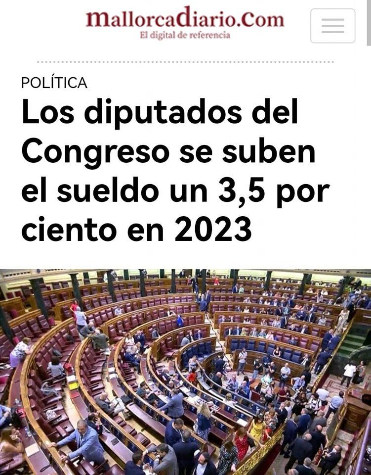 30/09/2022.-Desde TUpatria rechazamos la subida salarial aprobada en favor de los políticos 😡 mientras la ciudadanía tiene muchas dificultades para llegar a final de mes. Nosotros reduciremos el gasto político.❌ Fijaremos los sueldos de los representantes públicos con la limitación de salarios con referencia a las tablas salariales de los funcionarios de su administración de referencia.☑️